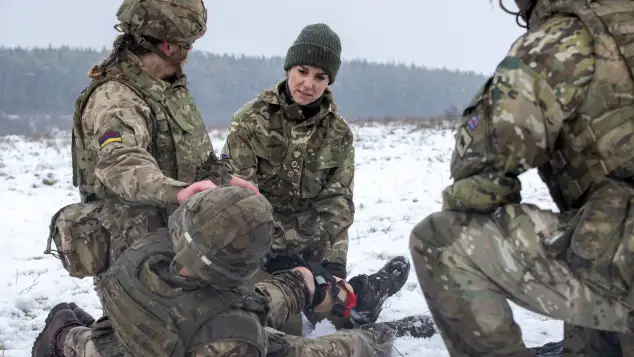 Bei einer Verletzungssimulation lernte Kate außerdem, wie man verwundete Soldaten auf dem Schlachtfeld medizinisch versorgt. Der Royal erfuhr mehr über die Einsätze der Armee in Ostafrika und sah sich abschließend eine Vorführung der vom Regiment verwendeten Waffensysteme an.