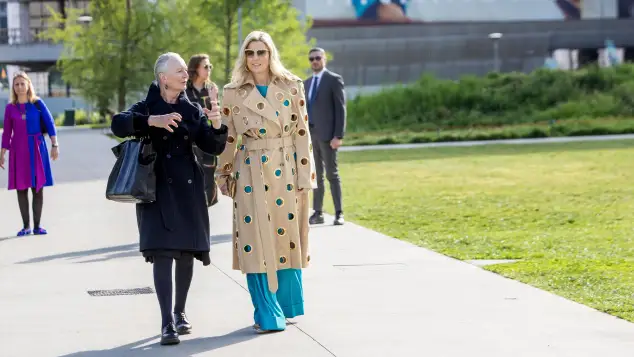 Dabei fiel Máxima mit ihrem Outfit besonders auf. In einem beigen Cut-out-Trenchcoat in Form von Kreisen vom dänischen Designer Claes Iversen trat sie in der italienischen Stadt Isola auf.