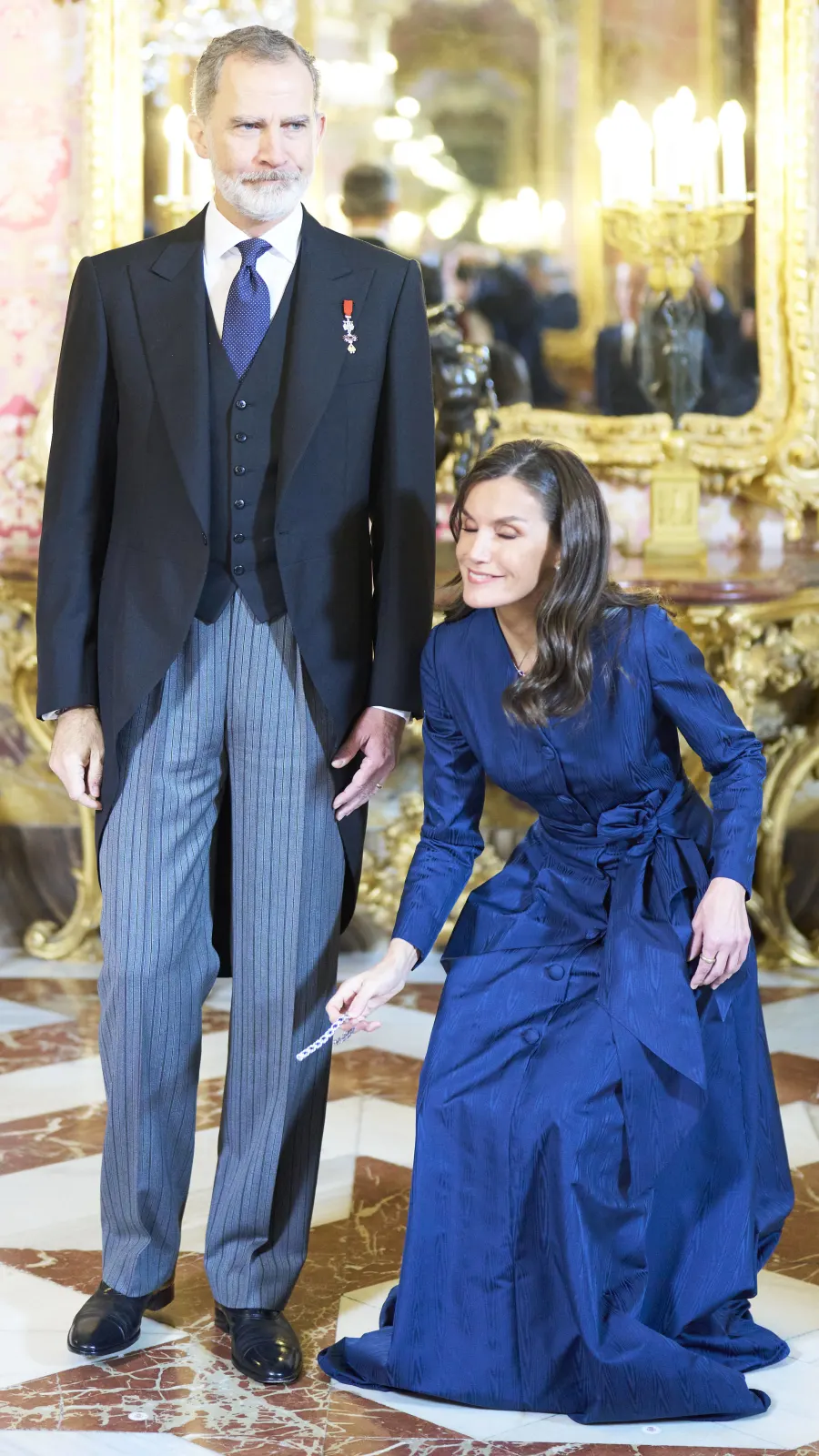 Doch als die Zeremonie dem Ende zuging, musste Letizia eine Fashion-Panne meistern. Der schönen Brünette fällt das Armband auf den Boden, woraufhin sich die Königin schnell bücken musste.