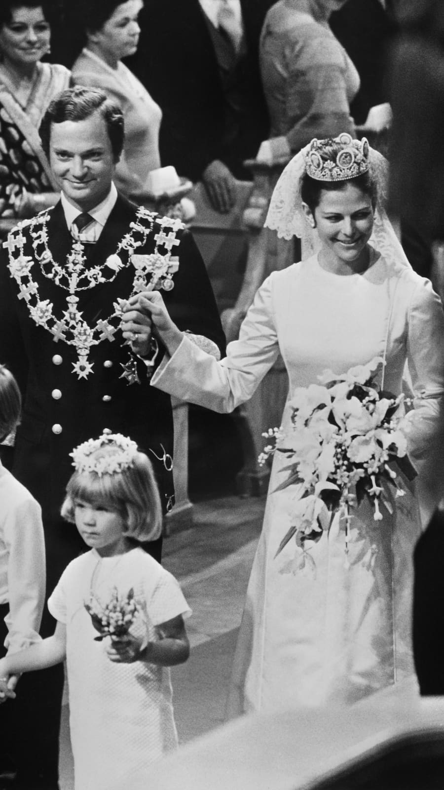 Die Hochzeit von Königin Silvia und König Carl Gustaf fand in der Stockholmer Storkyrka statt, dem Dom der schwedischen Hauptstadt. Alle Augen waren damals auf die junge Frau gerichtet. Die zukünftige Königin schien ihren Gang zum Altar aber mit Bravour zu meistern.