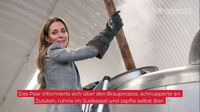 Prinz William stieg auf eine Leiter und gab Hopfen in den Kessel, wobei er lachend bemerkte, der Geruch erinnere ihn an Pferdefutter, wie der Kölner Stadt-Anzeiger meldet. Anschließend rührte Kate mit einem großen Holzstab im Kessel und stellte sich später einem kleinen Zapf-Wettbewerb mit ihrem Mann – laut Gastgeber mit erstaunlich professionellem Ergebnis.