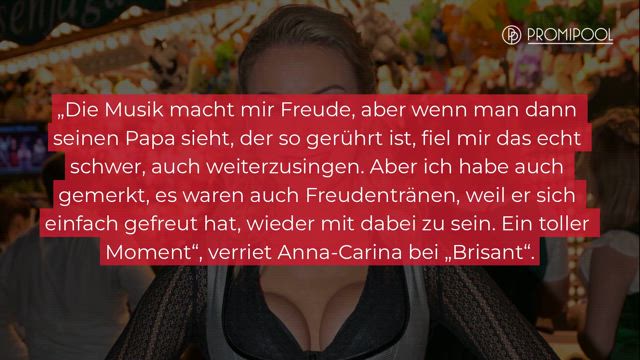 „Die Musik macht mir Freude, aber wenn man dann seinen Papa sieht, der so gerührt ist, fiel mir das echt schwer, auch weiterzusingen. Aber ich habe auch gemerkt, es waren auch Freudentränen, weil er sich einfach gefreut hat, wieder mit dabei zu sein. Ein toller Moment“, verriet Anna-Carina bei „Brisant“.