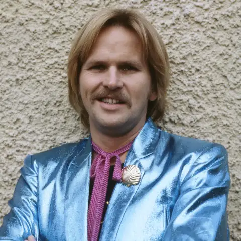 Auf einem Foto von 1976 zeigt sich der Sänger in einem extravaganten Outfit. Mit einem verschmitzten Lächeln blickt der Entertainer in die Kamera.