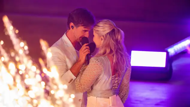 Besonders intim wirkt das Schlagerduett, wenn sich beide zugewandt und tief in die Augen sehen. Nicht nur die gesungenen Liebeszeilen, sondern auch die gemeinsamen Blicke lassen die Stars verliebt wirken. Der Auftritt bei „Die große Schlagerstrandparty“ wird am 12. August ab 20.15 Uhr im Ersten ausgestrahlt. Aufgenommen wurde die Show bereits Mitte Juli.