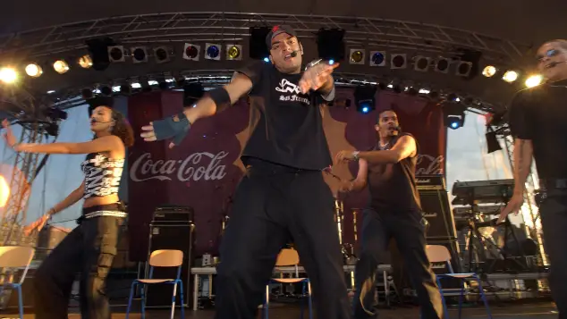 Beim Eröffnungskonzert der Coca-Cola/Universal-Music-Group-Sommerkampagne 2003 entstand ein Foto des Musikers mit seinen Bandkollegen Hila Bronstein (40), Faiz-Kevin Mangat (43) und Shaham Joyce (45).
