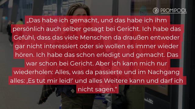 „Das habe ich gemacht, und das habe ich ihm persönlich auch selber gesagt bei Gericht. Ich habe das Gefühl, dass das viele Menschen da draußen entweder gar nicht interessiert oder sie wollen es immer wieder hören. Ich habe das schon erledigt und gemacht. Das war schon bei Gericht. Aber ich kann mich nur wiederholen: Alles, was da passierte und im Nachgang alles: ‚Es tut mir leid!‘ und alles Weitere kann und darf ich nicht sagen.“