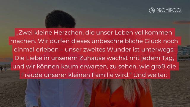 In der Caption heiß es: „Zwei kleine Herzchen, die unser Leben vollkommen machen. Wir dürfen dieses unbeschreibliche Glück noch einmal erleben – unser zweites Wunder ist unterwegs. Die Liebe in unserem Zuhause wächst mit jedem Tag, und wir können kaum erwarten, zu sehen, wie groß die Freude unserer kleinen Familie wird.“