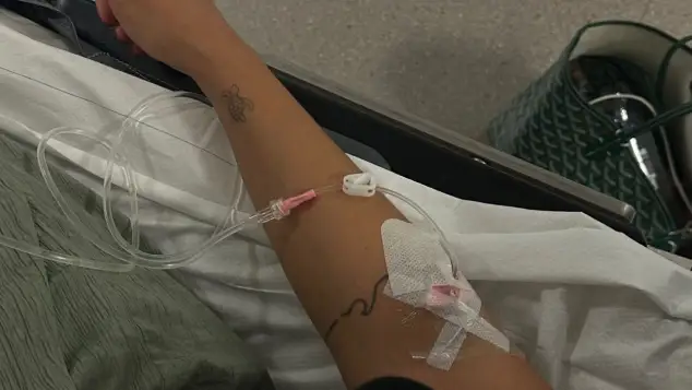 Zu einem Foto aus dem Krankenhaus, das sie mit einer Infusionsnadel im Arm zeigt, schreibt Romina: „Hatte gestern einen wunderschönen Abend, bis ich plötzlich einen anaphylaktischen Schock bekommen habe. Das zweite Mal in meinem Leben mit den gleichen Symptomen.“