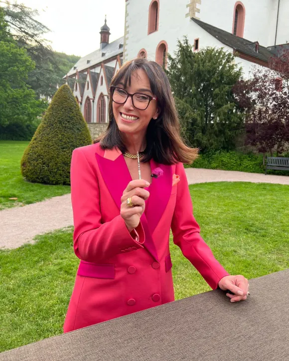 Auch Wendelas Kollegin Heide Rezepa-Zabel setzt auf einen Anzug. In der pinken Version wird sie zu einem echten Hingucker.