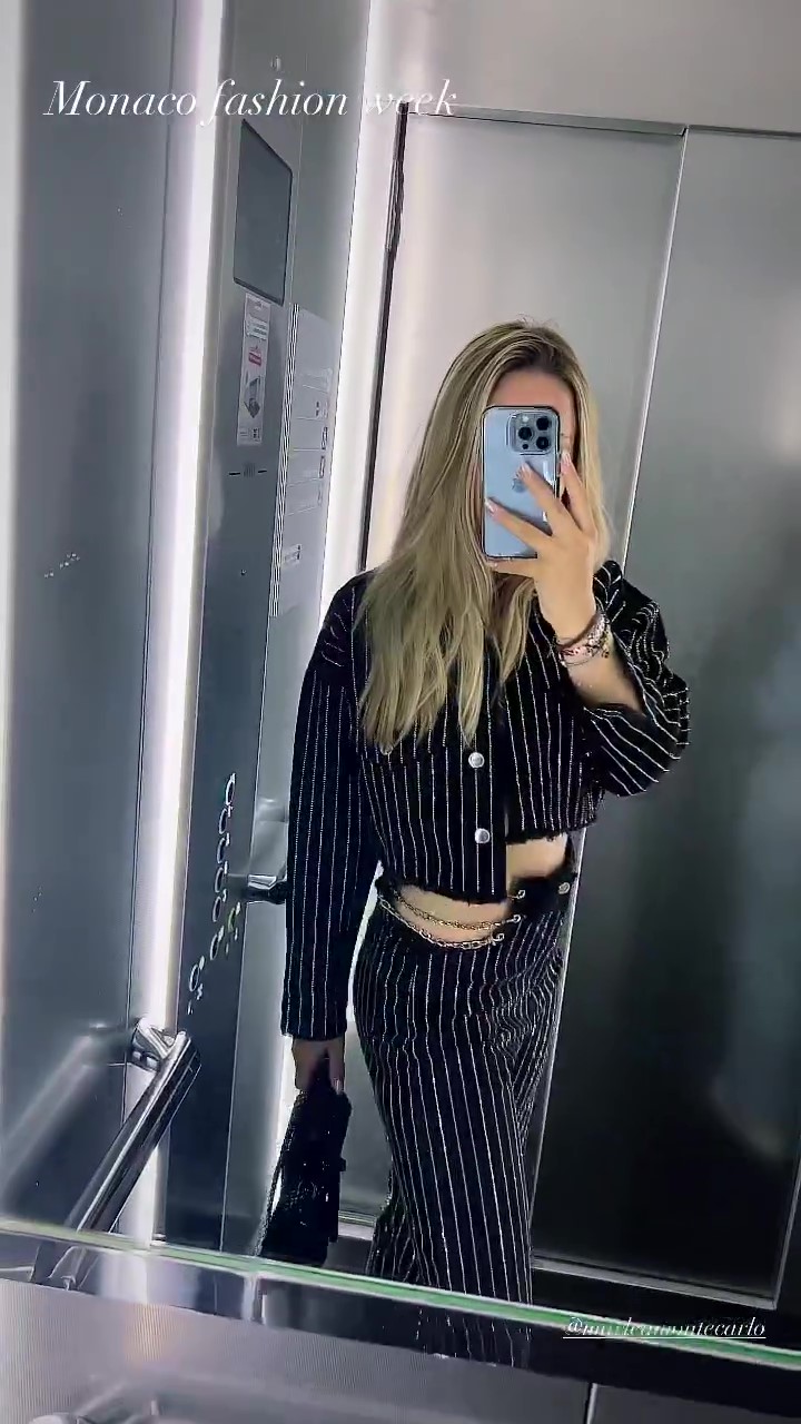 In ihrer Instagram-Story präsentierte Davina Geiss vor ihrem Besuch bei der monegassischen Fashion Week ihr Hammer-Outfit. Die 19-Jährige entschied sich für eine schwarz-weiß gestreifte Cut-out-Hose und den dazugehörigen Cropped Blazer.