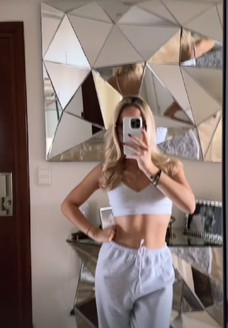 Davina Geiss präsentiert sich in einem knappen Sport-Outfit. Die Geissens Tochter trägt eine hellgraue Jogginghose und kombiniert dazu einen Sport-BH in derselben Farbe. Dabei kommen vor allem ihre durchtrainierten Bauchmuskeln zum Vorschein. Ihre Haare trägt Davina gewellt offen. Die 21-Jährige sieht einfach fantastisch aus!