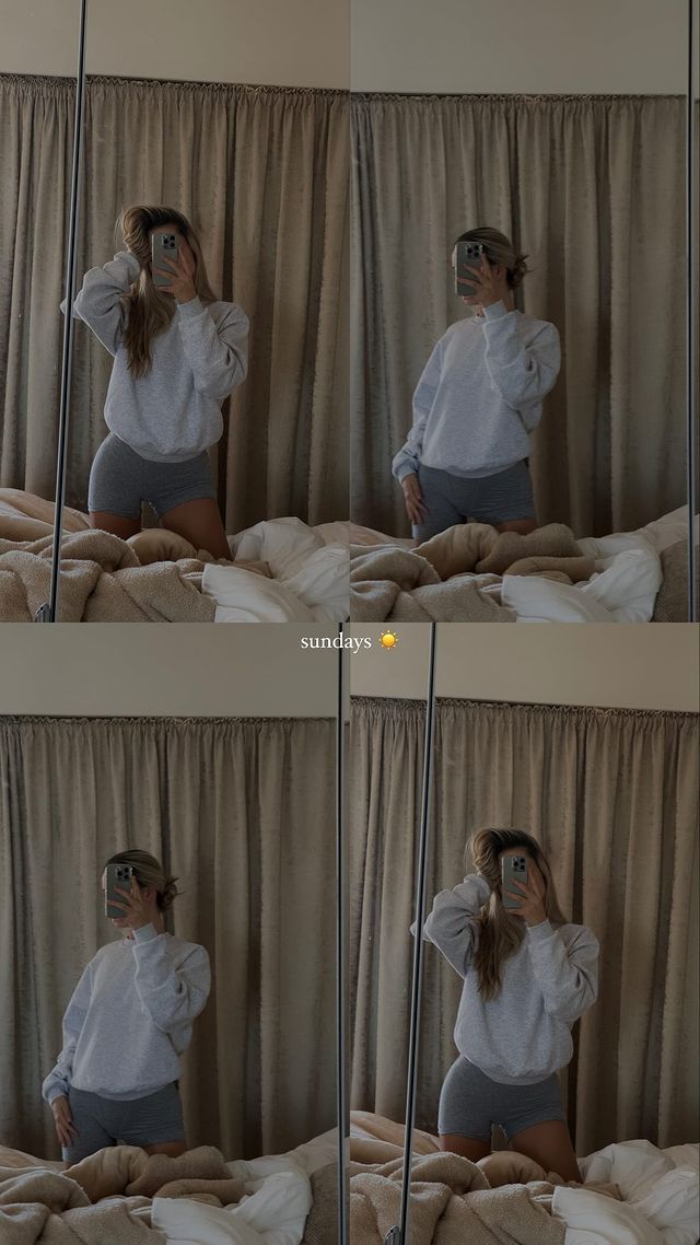 „Sonntage“, schreibt sie zu den Bildern, die sie auf ihrem Bett zwischen Decken zeigt. Passend dazu trägt Davina einen Oversized-Pullover in Grau, unten herum darf es aber etwas freizügiger sein. Da hat sie sich für Leggins-Shorts entschieden, die ihre schlanken Beine betonen.