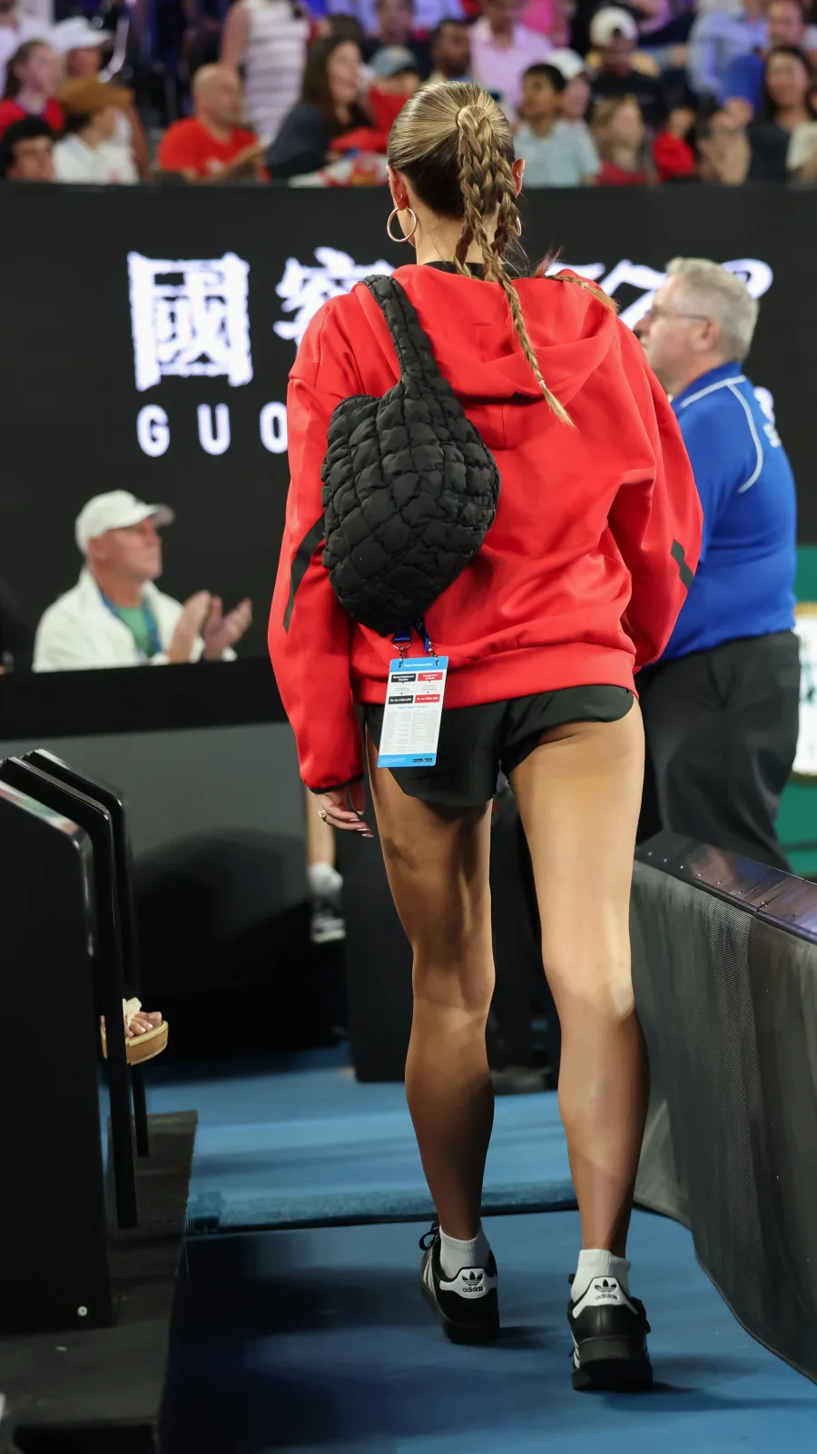 Zu einem Match erschien Sophia in einem besonders heißen Look. Die Moderatorin entschied sich für ein Sport-Outfit, bestehend aus einer roten Kapuzenjacke und einer schwarzen Mini-Shorts.
