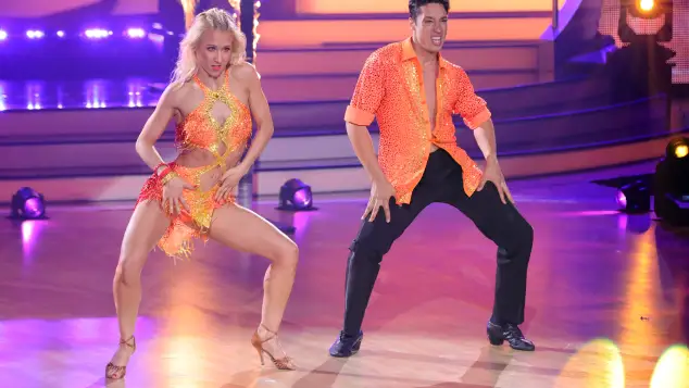 Ein weiteres Ensemble aus der 15. Staffel hat es ebenfalls in die Auswahl der heißesten Looks geschafft. Hier schwang Kathrin in einem funkelnden Mini-Dress die Hüften. Die Farben erinnern dabei an die einer Flamme – passender ging es wohl nicht, wie dieser Anblick beweist.