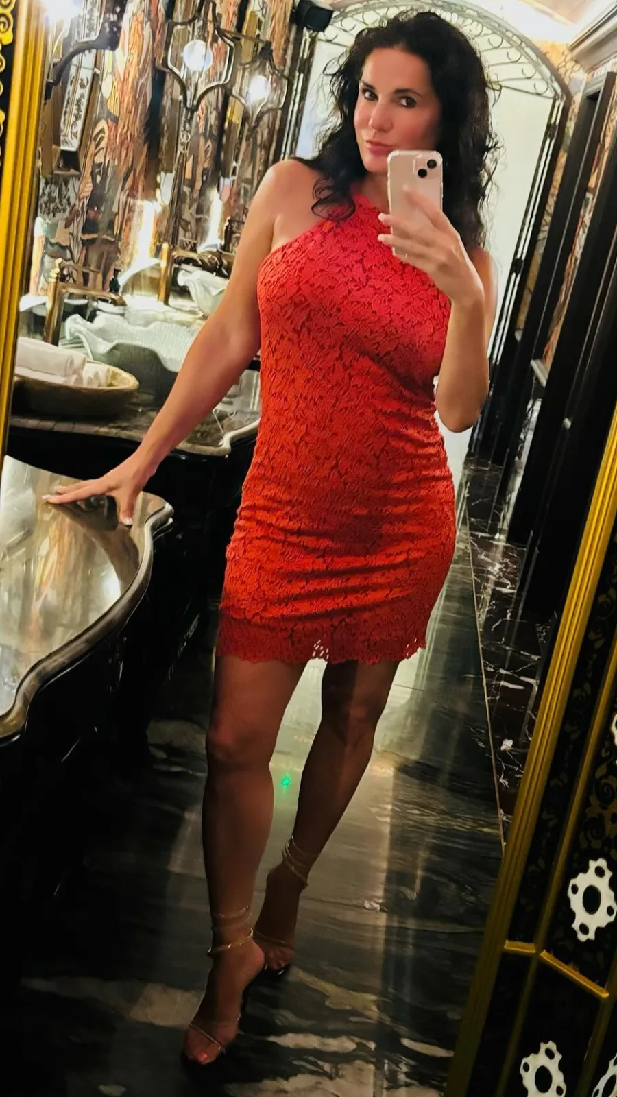 Auf ihrem Instagram-Account teilt Mariella drei neue Fotos, die es in sich haben. Sie steht vor einem glamourösen Spiegel und fotografiert sich dabei selbst. Das luxuriöse Ambiente interessiert bei ihrem Anblick vermutlich niemanden mehr. Sie erstrahlt in einem ultraknappen Mini-Kleid, das komplett in der Farbe Rot gehalten ist und mit einem coolen Muster im Stoff verziert wurde.