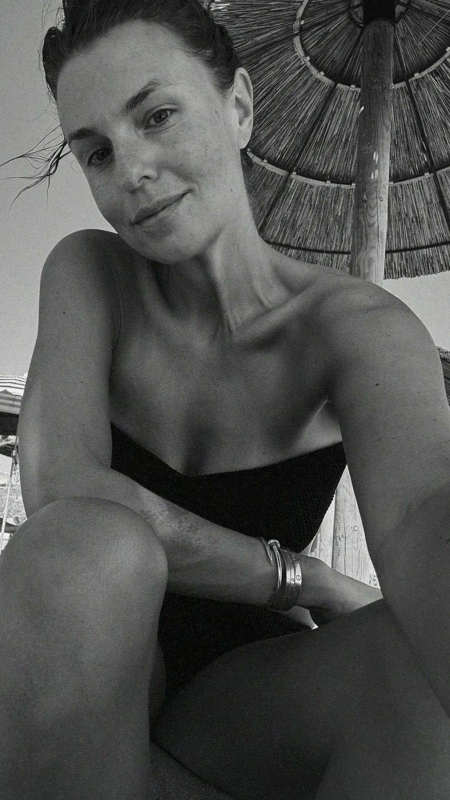 Das mit einem schwarz-weißen Filter aufgenommene Selfie ist ein echter Traum und sorgt für einen Wow-Moment. Ohne Make-up im Gesicht kommt die natürliche Schönheit der 35-Jährigen wunderbar zur Geltung. In dem knappen Bade-Zweiteiler sind außerdem die durchtrainierten Arme der Beauty deutlich zu erkennen.