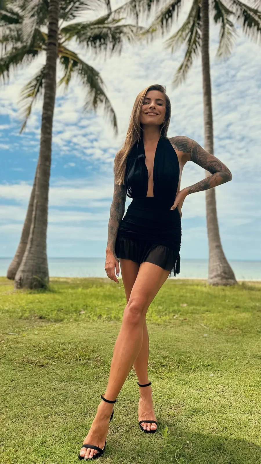 Sophia Thomalla postete ein Bild von sich, das sie am Strand unter Palmen zeigt. Doch von dem paradiesischen Hintergrund bekommt man bei dem Anblick der Moderatorin vermutlich kaum etwas mit.