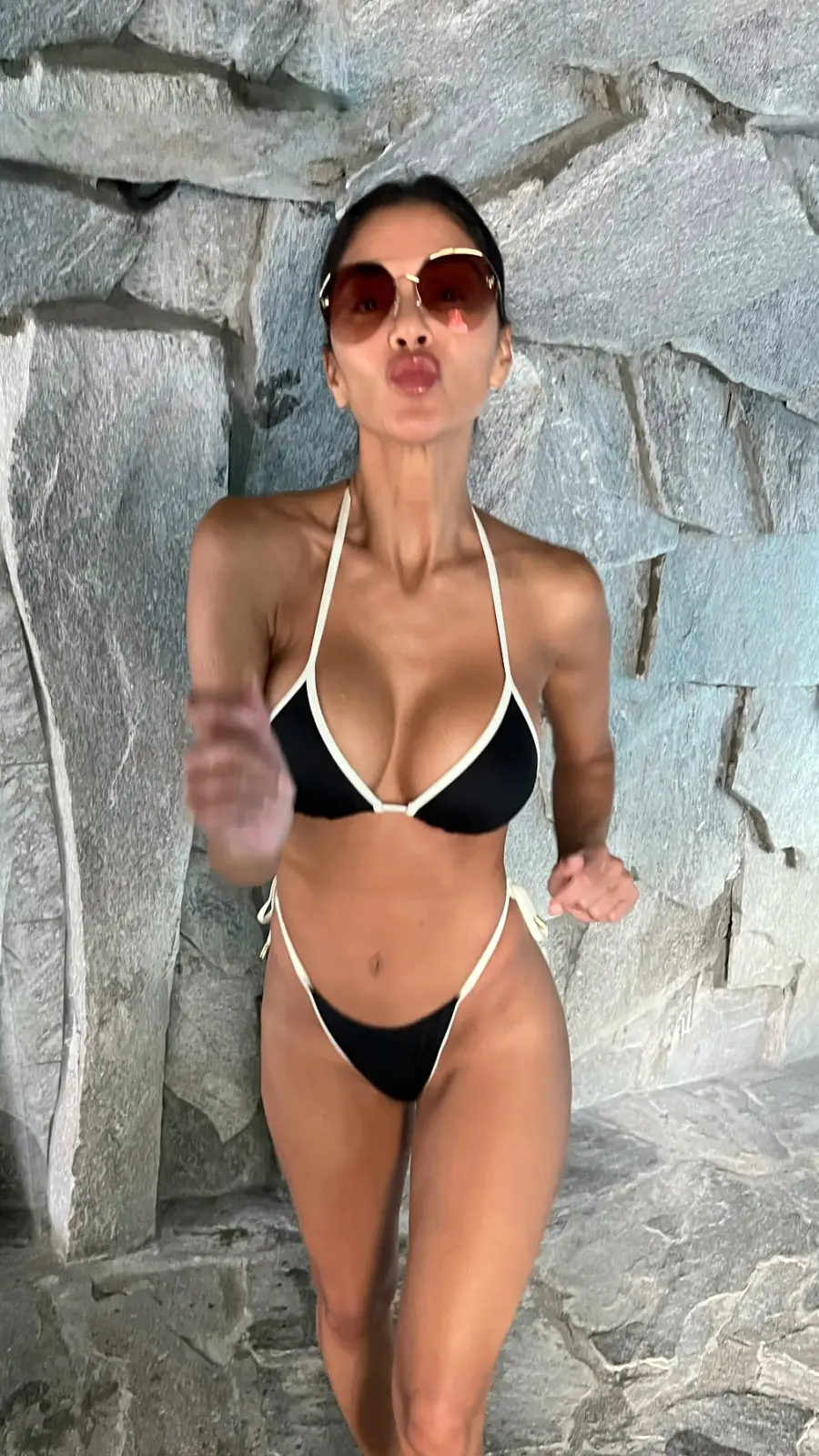 Nicole Scherzinger, die uns immer wieder mit sexy Looks begeistert, hat ihren 46. Geburtstag auf Instagram mit einer atemberaubenden Fotoreihe gefeiert. In einem schwarzen Bikini mit weißem Rand und seitlich gebundenen Schnürungen posiert sie am Rand eines luxuriösen Swimmingpools vor einer malerischen Bergkulisse.