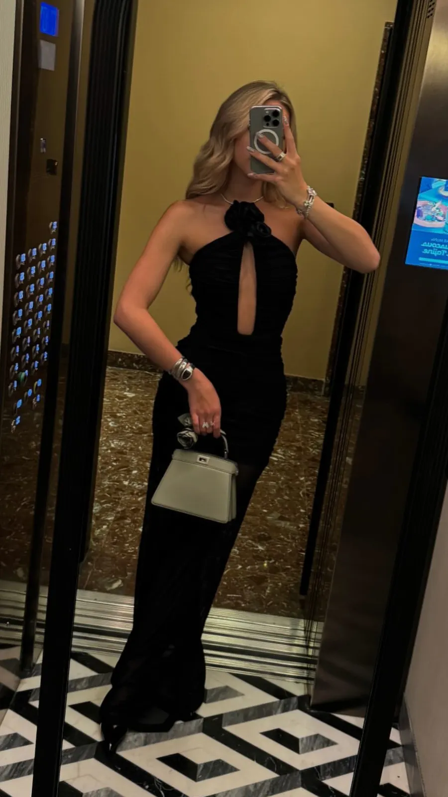 In ihrem Look hätte Shania Geiss aber auch gleich selbst über den Laufsteg schreiten können. Das schwarze bodenlange Kleid stand ihr super.