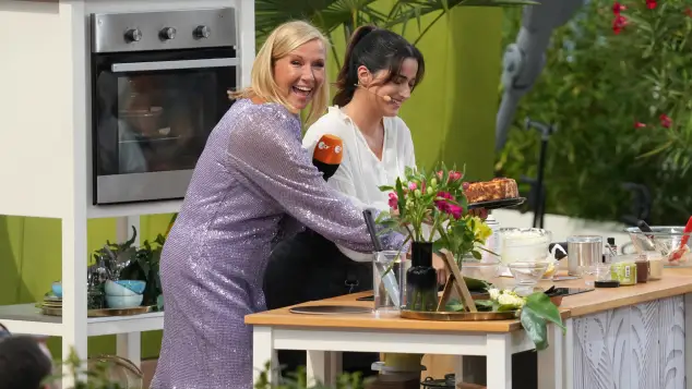 In der Sendung verriet die Moderatorin dann, was ihr Geheimnis sei, um dieses Kleid zu tragen. Während Influencerin Kikis Kitchen einen Käsekuchen zu breitete, gab Kiwi bekannt: „Ich habe einen Bauchweg-Schlüpfer an. Aber da passt noch was rein.“
